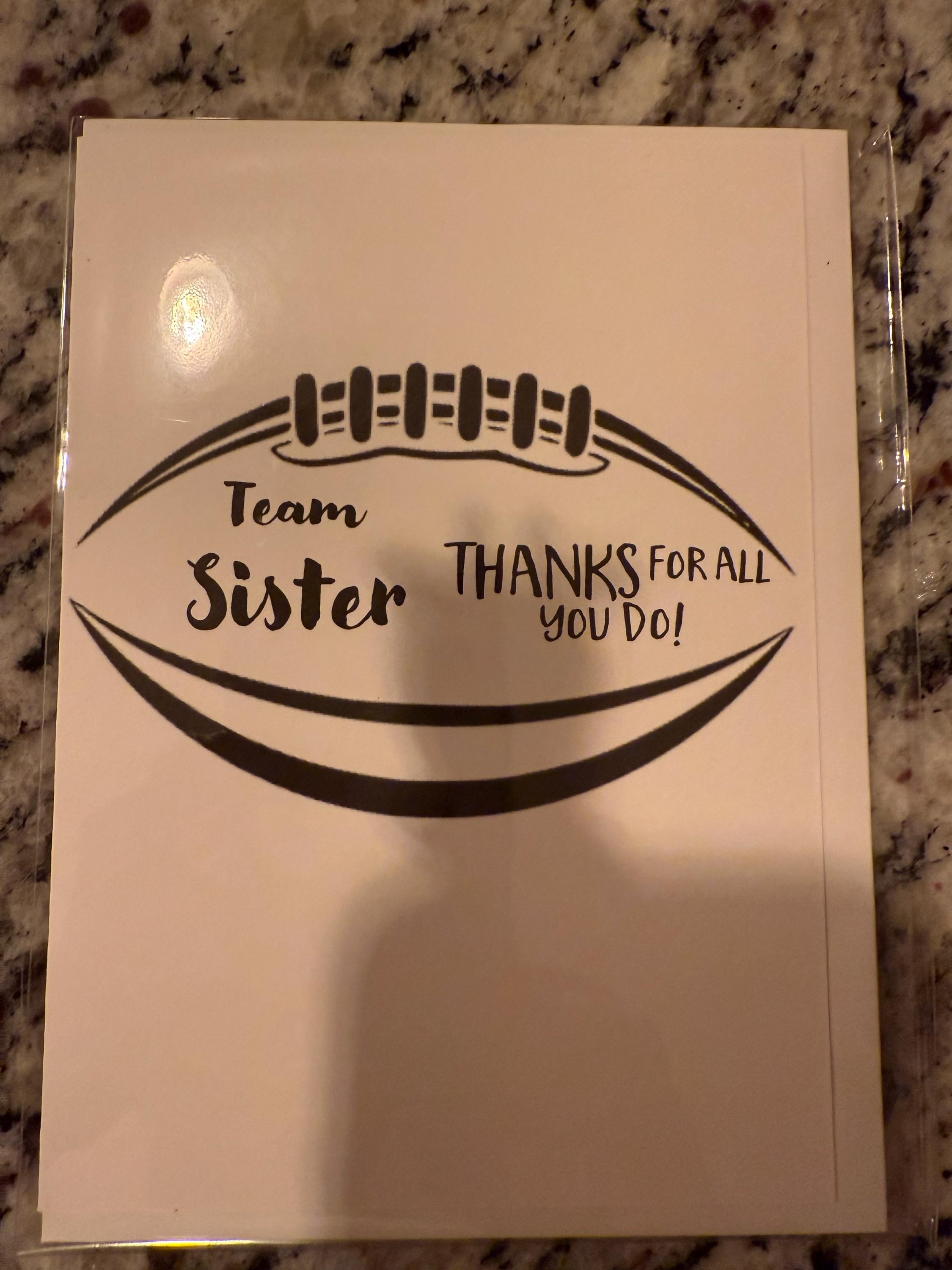 Football Team Mom Greeting Card - Surprise the team mom with a unique football themed thank you card, which is blank on the inside to personalize a note.